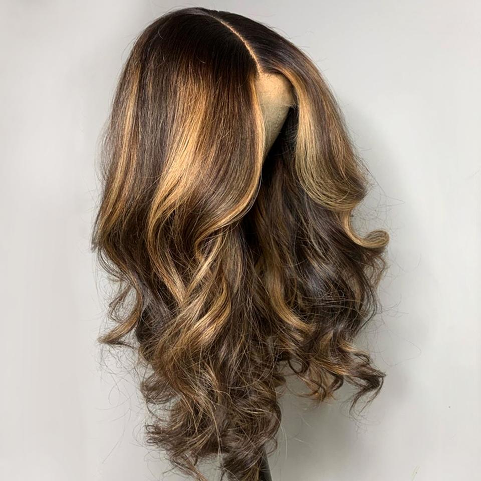 Goddess-like Honey Highlights Brown Body Wave Lace Frontal Wig